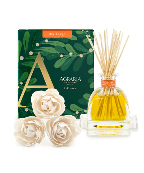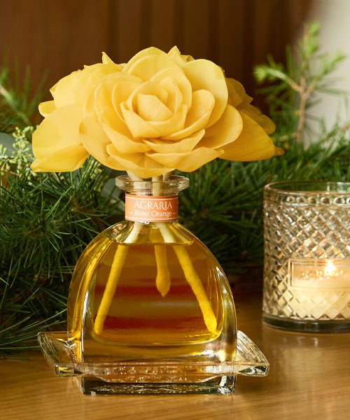 Agraria diffusers are blended using the highest quality essential and natural oils. Our fragrances are true extracts from genuine botanicals and source ingredients. Fragrance can be diffused through the petals of hand-made sola flowers that come to life with color as the oil is drawn up the cotton wick. Or, if you prefer, use the diffuser reeds for a simple, clean look – both are included so the choice is yours. In keeping with the Agraria definition "of the earth" and being environmentally friendly, sola flowers and reeds are crafted from natural materials and refill oils are available to replenish the reusable glass bottle.