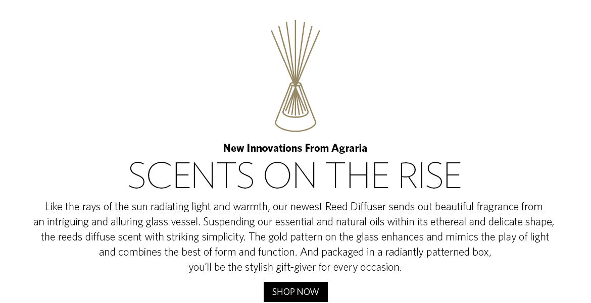 Featuring the same high quality essential and natural oil blends in your favorite Agraria scents